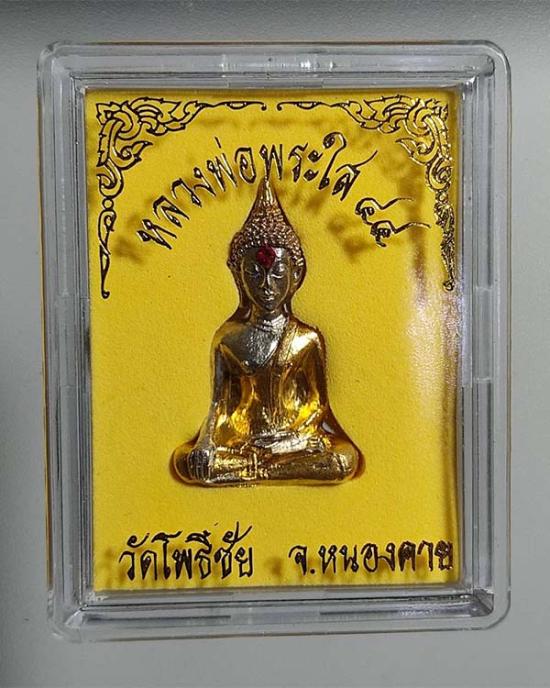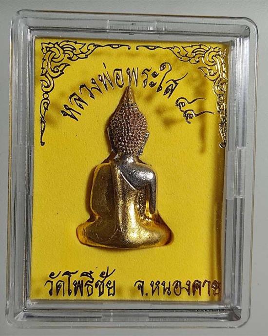 พระกริ่งหลวงพ่อพระใส พิมพ์สมาธิ เนื้อสามกษัตริย์ ปี2544 วัดโพธิ์ชัย จ.หนองคาย ตอกโค๊ดใต้ฐาน สวยเดิม พร้อมกล่องเดิม |