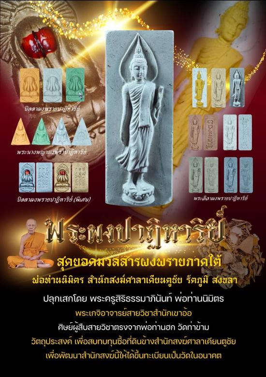 พระผงพรายปาฏิหาริย์ พระครูสิริธรรมาภินันท์ (พ่อท่านนิมิตร) สำนักสงฆ์ศาลาเคียนตูชัย สงขลา พ.ศ.๒๕๖๗ |