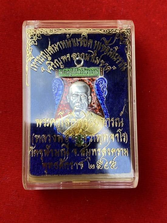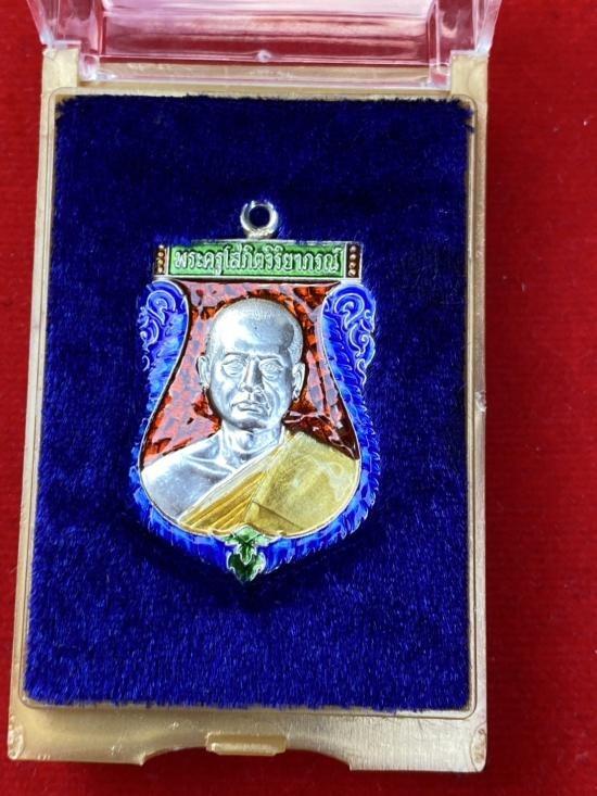 ออกวัด 2,500 เหรียญเสมาหน้าแซยิด หูเชื่อมโบราณ เจริญพร ลาภมาไม่ขาด หลวงพ่ออิฏฐ์ วัดจุฬามณี เนื้อเงินลงยาแดง ลงยาจีวร เลข8260