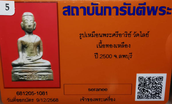 พระกริ่งรูปเหมือนพระศรีอาริย์ วัดไลย์ รุ่นแรก เนื้อทองเหลือง กริ่งดัง ปี2500 จ.ลพบุรี + บัตรG-pra สภาพเดิมค่ะ สภาพตามรูปทุกประการค่ะ