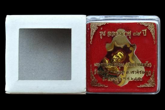 *** เคาะเดียวแดง ทุกรายการ *** เหรียญฉลองอายุ 79 ปี เนื้อโลหะลงยา หลวงพ่อเขียน วัดกะทิง จันทบุรี ปี 2552 มีกล่อง สภาพตามรูป