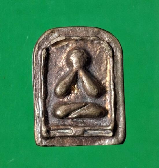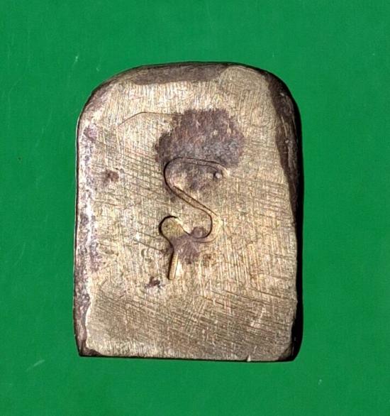 พระปิดตาเนื้อโลหะองค์เล็ก ด้านหลังมียันต์ตอก ไม่ทราบที่ครับ |