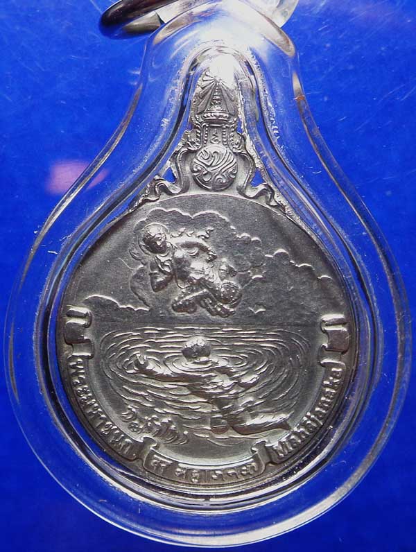 เหรียญพระมหาชนก พิมพ์เล็ก เนื้อเงิน ปี 2542 ผิวกระจกเลี่ยมพลาสติกกันผิว พร้อมใช้