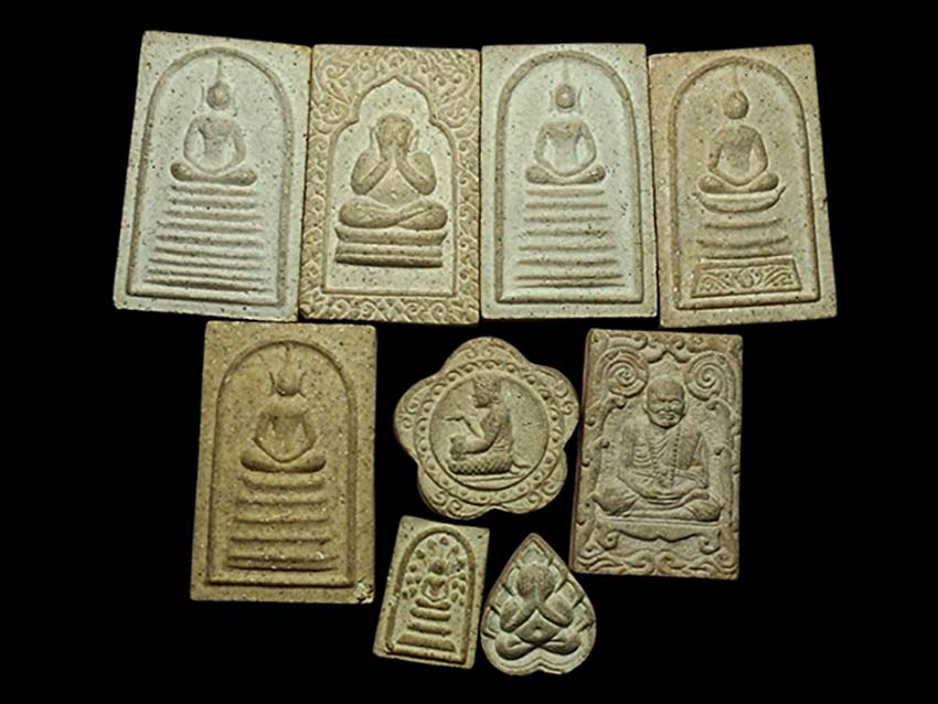 พระเครื่องชุด รวม 9 องค์ หลวงปู่เครื่อง ธมฺมจาโร ผงพุทธคุณทั้ง ๙ วัดเทพสิงหาร จ.อุดรธานีปี เสาร์ห้า พ.ศ.2519 กล่องเดิม(หูกล่องหัก)