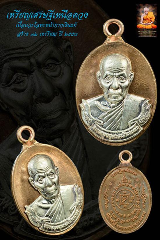 เหรียญเศรษฐีเหนือดวง เนื้อนวะโลหะ หน้ากากเงินแท้ สร้าง ๓๒ เหรรียญ ปี ๒๕๕๘ พ่อท่านเขียว วัดห้วยเงาะ |
