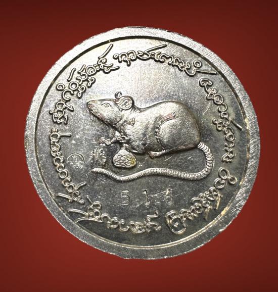 เหรียญ พญาหนูเผือก หลวงปู่มหาศิลา เนื้ออัลปาก้า หน้ากากทองทิพย์