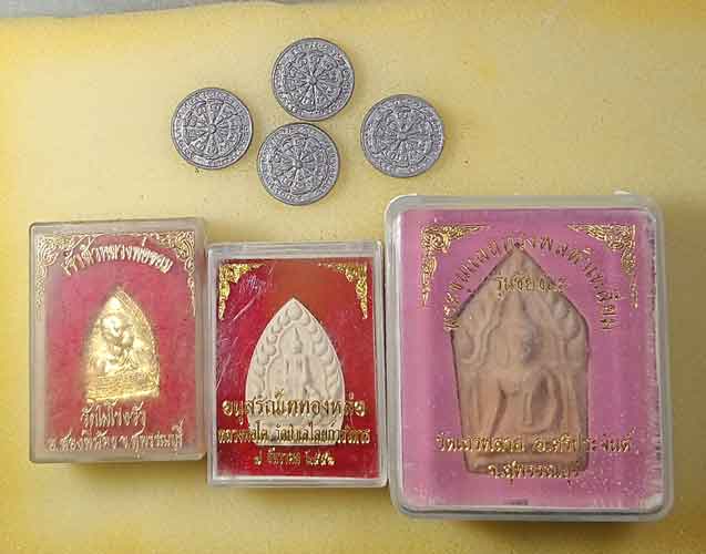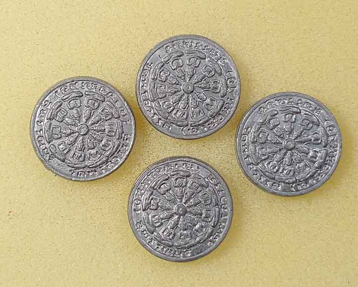 เหรียญงบน้ำอ้อย เนื้อชินตะกั่ว วัดพรสวรรค์ ( เขาซ่อนหม้อ ) จ.สุพรรณบุรี 4 เหรียญ