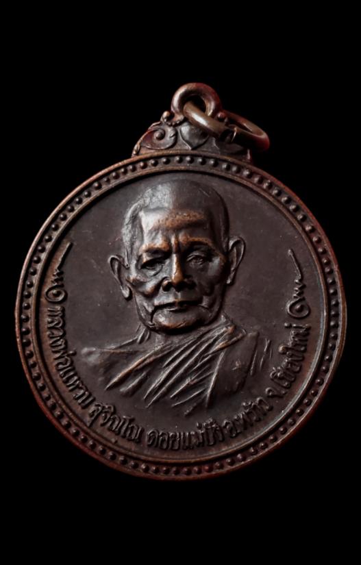 เหรียญกลมเนื้อทองแดง รุ่น สร้างอุโบสถวัดป่าเจริญธรรม หลวงปู่แหวน สุจิณฺโณ พ.ศ.2517