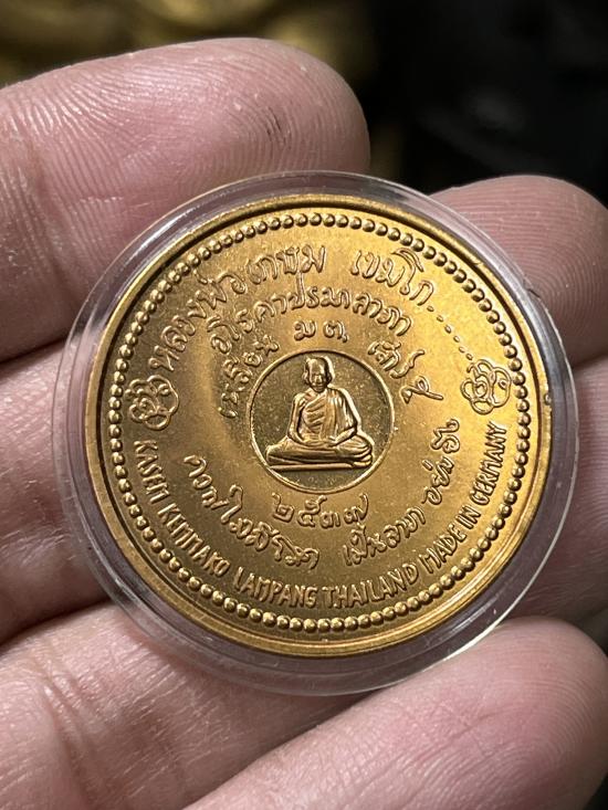 เหรียญกลมหลวงพ่อเกษม อโรคาปรมาลาภา ความไม่มีโรคเป็นลาภอันประเสริฐ ปี37 บล๊อกนอก พร้อมตลับเดิม สภาพสวยเดิมๆ แท้ๆครับแบบนี้ |