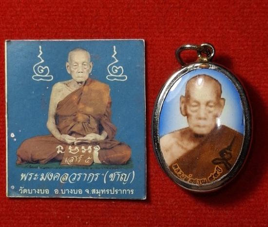 รูปถ่าย+ล็อกเก็ต หลวงพ่อชาญ วัดบางบ่อ จ.สมุทรปราการ พระสภาพสวยมากๆเลยนะครับ รูปถ่ายที่ด้านหลังมีรอยจารมือของหลวงพ่อชาญด้วยนะครับ |
