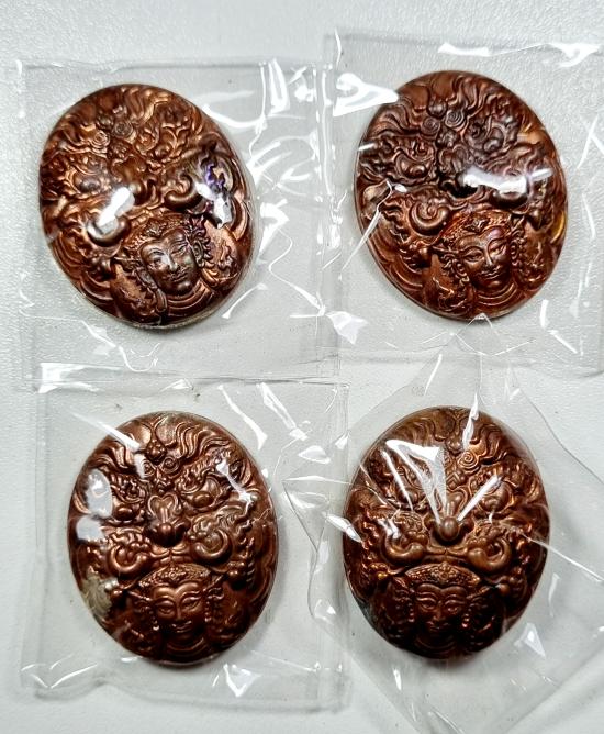 เหรียญพญาราหู พระอาจารย์ประสูติ วัดในเตา เหรียญเทพราหู เนื้อสัมฤทธิ์แดงกรรมการ ฝังเม็ดกริ่ง 4องค์ |