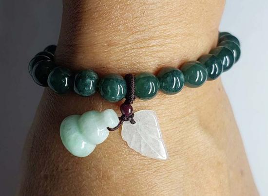***วัดใจ***สร้อยข้อมือ หยกจักรพรรดิ์ พร้อมจี้น้ำเต้าดูดทรัพย์ เม็ด 8 มิล สวยๆ |