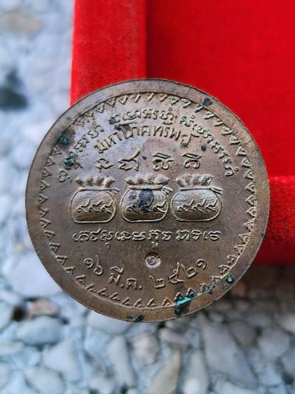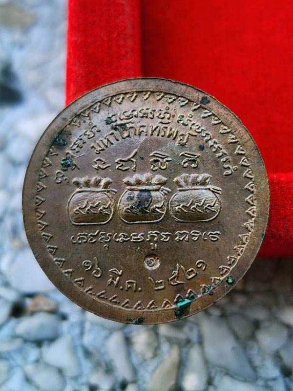 เหรียญมหาโภคทรัพย์ หลวงปู่แหวน ปี 21 เนื้อทองแดง ตอกโค๊ดด้านหลัง
