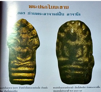 พระปรกใบมะขามหลังลายผ้า ท่านพระอาจารย์ฝั้น ปี 2516 |
