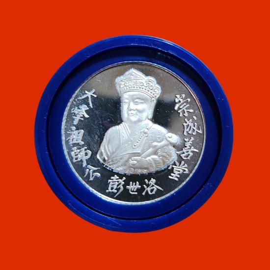 เหรียญเนื้อเงินขัดเงา พระพุทธชินราช ด้านหลัง ไต้ฮงโจวซือ ปลุกเสกโดย มูลนิธิประสาทบุญสถาน 21 ธ.ค. 2538 พร้อมกล่องเดิม
