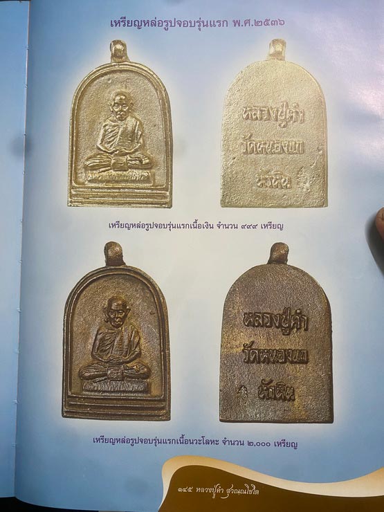 เหรียญหล่อจอบรุ่นแรก เนื้อเงิน ปี 2536 หลวงปู่คำ วัดหนองแก อ.หัวหิน จ.ประจวบฯ กล่องเดิม