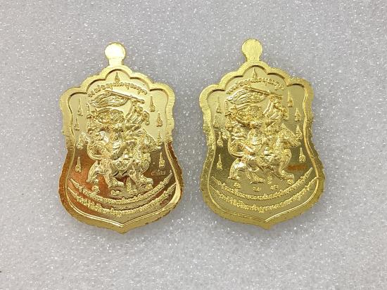 เคาะเดียวแดง 200 ( 2 เหรียญ) เหรียญรูปเหมือน หลังหนุมาน8กรขี่สิงห์ รุ่น มหาเศรษฐี๘๐ หลวงพ่อเอื้อน วัดวังแดงใต้ จ.พระนครศรีอยุธยา เนื้อกะไหล่ทองลงยาสีแดง ,สีเขียว กล่องเดิม |