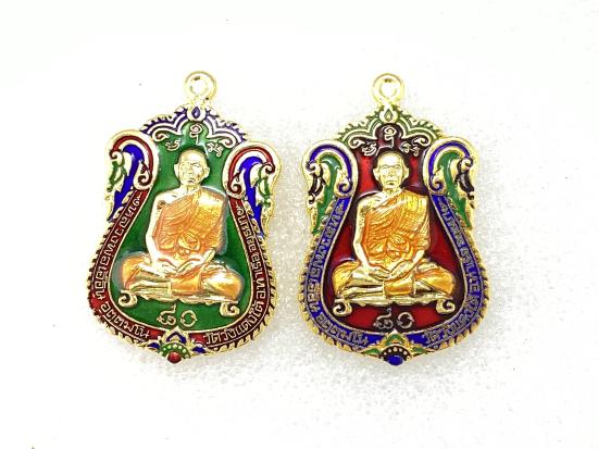 เหรียญรูปเหมือน หลังหนุมาน8กรขี่สิงห์ รุ่น มหาเศรษฐี๘๐ หลวงพ่อเอื้อน วัดวังแดงใต้ จ.พระนครศรีอยุธยา เนื้อกะไหล่ทองลงยาสีแดง ,สีเขียว กล่องเดิม |