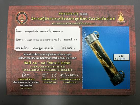 ได้รับรางวัลชนะอันดับ1 นิทรรศการประกวดการอนุรักษ์พระเครื่อง พระบูชา เครื่องรางของขลัง และเหรียญคณาจารย์ยอดนิยม ทั่วประเทศ |