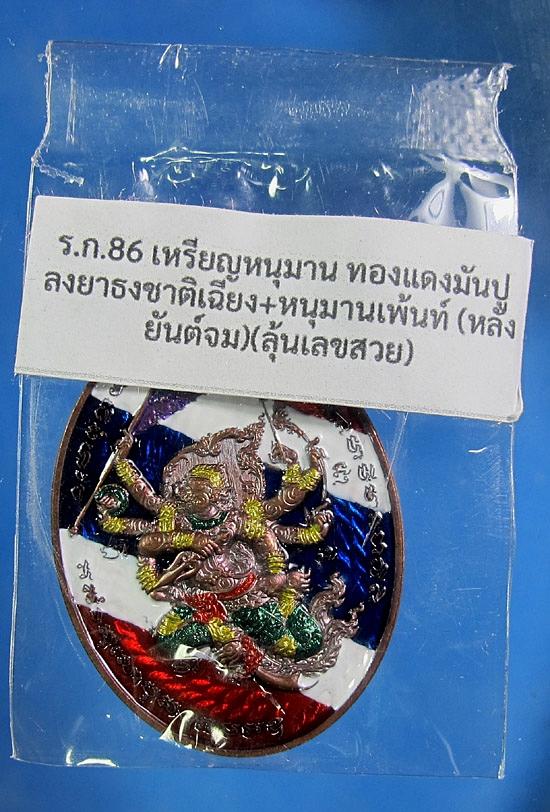 หรียญหนุมานปราบไพรี เนื้อทองแดงมันปู ลงยาธงชาติเฉียง+หนุมานเพ้นท์ หลังยันต์จม No 67 หลวงปู่ฝั้น วัดศรีถมอรัตน์ (หน้าผา) เพชรบูรณ์