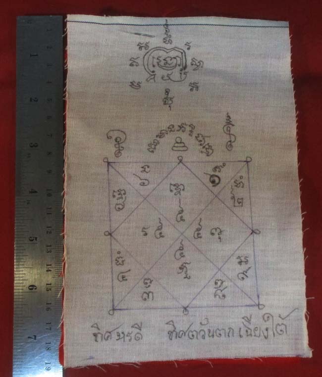 ผ้ายันต์ ไม่ทราบที่ จารยันต์ด้วยมือ ครับ