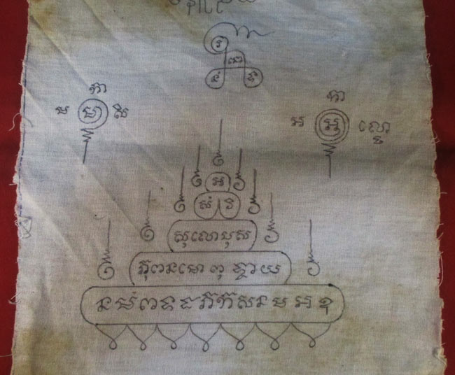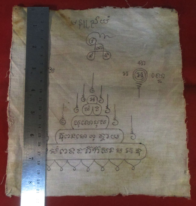 ผ้ายันต์ ไม่ทราบที่ จารยันต์ด้วยมือ ครับ