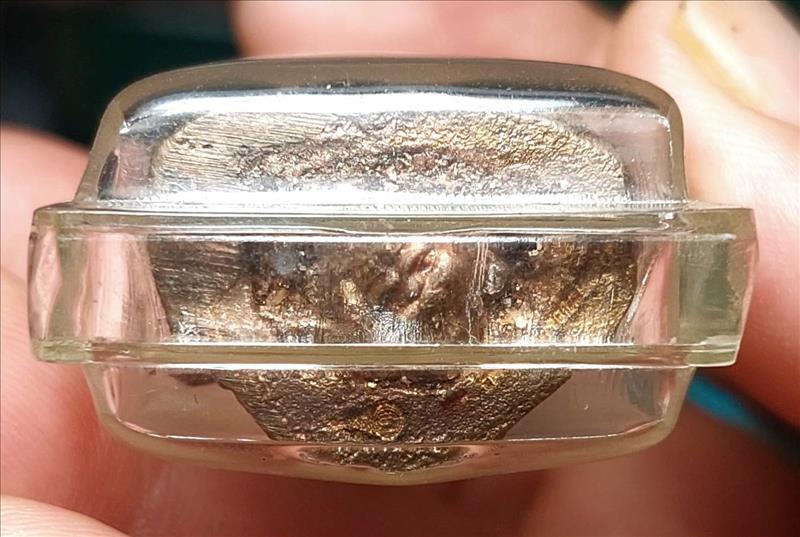 ใต้ฐานอุดผง ฝังเหรียญฤาษีปู่เสือจิ๋ว