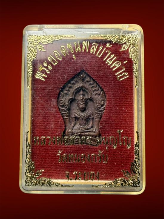 พระยอดขุนพล บ้านค่าย รุ่นแรก หลวงพ่อสาคร วัดหนองกรับ พิมพ์เล็ก เนื้อทองแดง พร้อมกล่องเดิม |