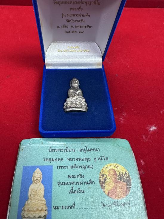 พระกริ่งนเรศวรผ่านศึก หลวงพ่อพุธ ฐานิโย วัดป่าสาลวัน จ.นครราชสีมา ปี2538 เนื้อเงิน หายาก พร้อมกล่อง+การ์ด