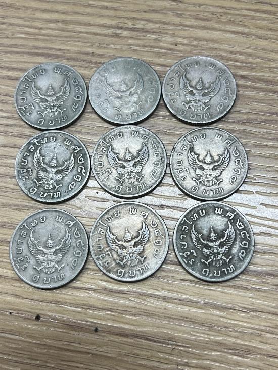 ++ เหรียญ 1 บาท มหาบพิธ เหรียญครุฑปี 17 ผ่านใช้ จำนวน 9 เหรียญ ++2