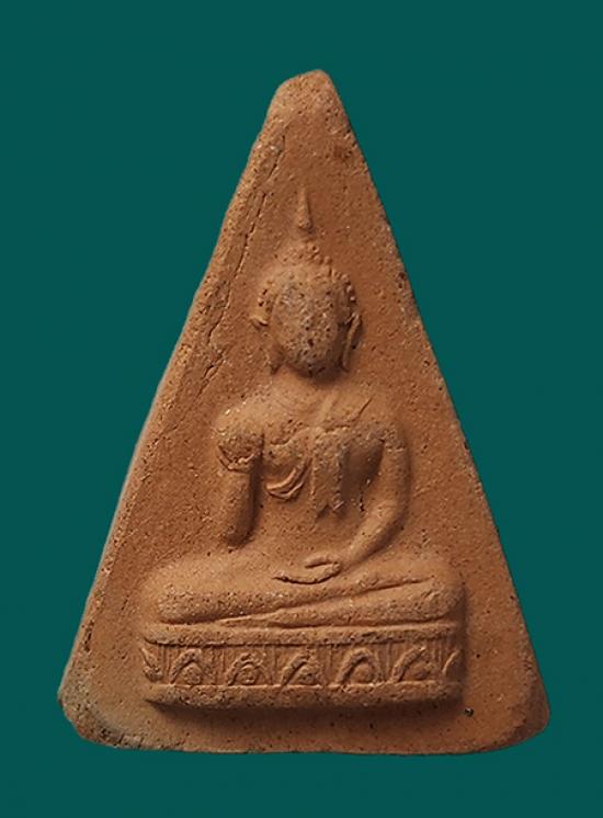 250.- พระพุทธกวัก สามเหลี่ยม หลังยันต์ เนื้อดินเผา อาจารย์ชุมไชยคีรี ปี 2497 พิธีวัดพระบรมธาตุ จ.นครศรีธรรมราช __2