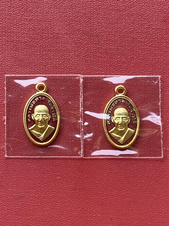 เคาะเดียวแดง เม็ดแตง 2องค์หลวงปู่ทวด รุ่น102ปีอาจารย์ทิม เนื้อชุบทองลงยาสีแดง |