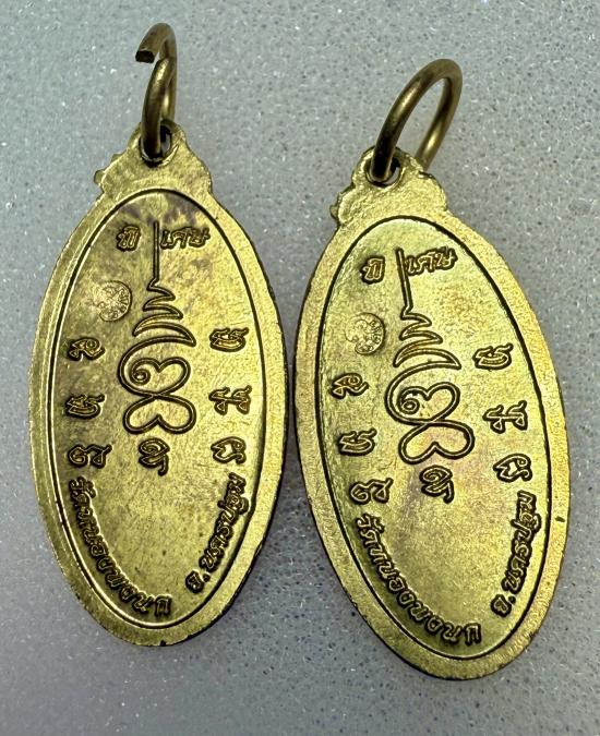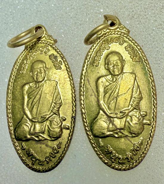 เหรียญหลวงปู่แผ้ว รุ่นใบขี้เหล็กหนุนดวง ปี ๒๕๕๑ เนื้อทองฝาบาตร พิมพ์เล็ก สภาพสวย 2เหรียญ