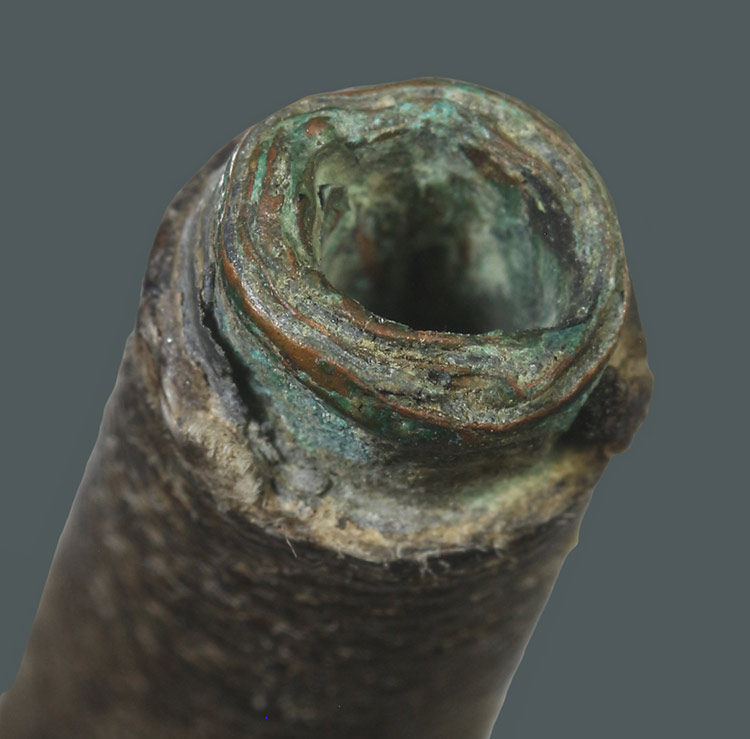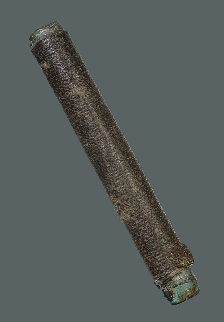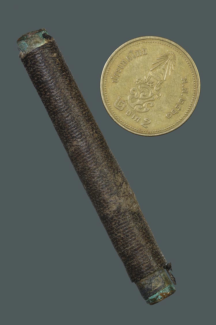 วัดใจ**เครื่องราง ตะกรุดถักเชือกลงรักเก่า เนื้อสองกษัตริย์ ตะกั่ว+ทองแดง ยาว 2.5นิ้ว.....ตามสภาพครับ