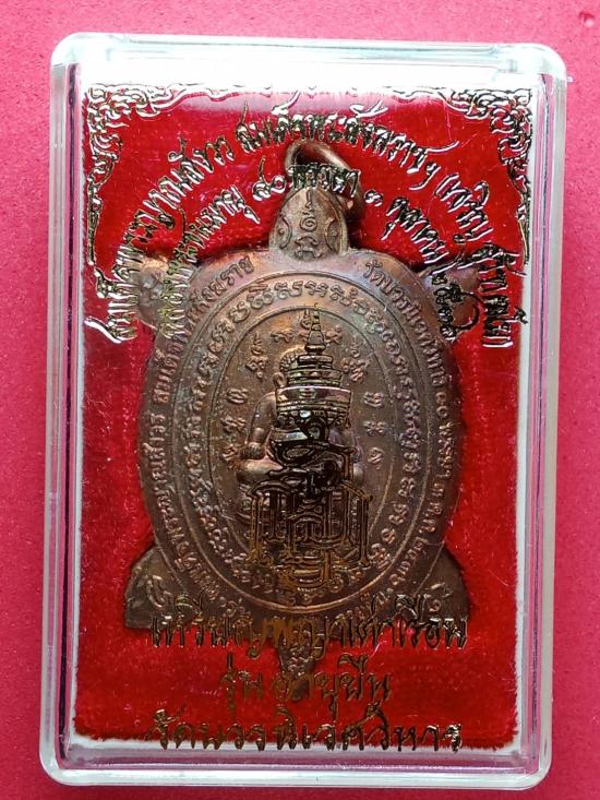 พญาเต่าเรือน รุ่นอายุยืน ฉลองพระชนมายุ ๘๐ พรรษา ๓ ตุลาคม ๒๕๓๖ เนื้อทองแดงผสมชนวนพระสังกัจจายน์ญส.ปี ๒๕๓๐ (พระสังกัจจายน์ญส.รุ่นแรก ปี ๒๕๓๐ เป็นรุ่นสำคัญมีส่วนผสมของชนวนพระกริ่งบวรรังสี ๒๕๒๘ และชนวนพระกริ่งปวเรศ ๒๕๓๐ ล้วน ๆ โดยไม่มีชนวนพระรุ่นอื่นเจือปนเลย) พิธีพุทธาภิเษก-ชัยมังคลาภิเษก ณ พระอุโบสถวัดบวรนิเวศวิหาร หลวงปู่หลิว ปณฺณโก วัดไร่แตงทอง เทพเจ้าแห่งพญาเต่าเรือน ร่วมปลุกเสกในพิธี หลวงพ่อเปิ่น หลวงพ่อแย้ม วัดสามง่าม หลวงพ่อพูล วัดไผ่ล้อม หลวงพ่อไสว วัดปรีดาราม หลวงพ่อแช่ม วัดดอนยายหอม หลวงพ่อยิด วัดหนองจอก หลวงพ่อสง่า วัดบ้านหม้อ ฯลฯ ร่วมพิธี เคาะเดียว พระมาพร้อมกล่องเดิม