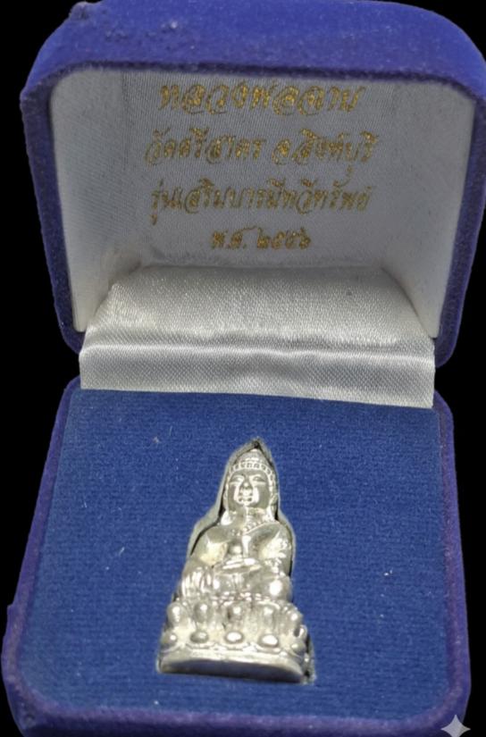 พระกริ่งรุ่นเสริมบารมีทวีทรัพย์ หลวงพ่อฉาบ วัดศรีสาคร ปี 2556 เนื้อเงิน หมายเลข 99 ตอกโค๊ดที่ใต้ฐาน