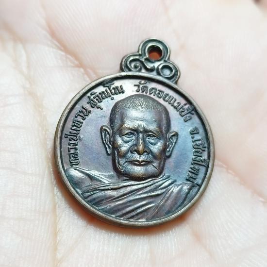 เหรียญร่มโพธิ์ หลังใบโพธิ์ เนื้อทองแดงรมดำ |
