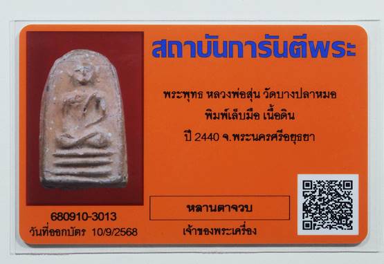 พระเนื้อดินหลวงพ่อสุ่น วัดบางปลาหมอ (พระอาจารย์ของหลวงพ่อปาน วัดบางนมโค) ปี2440 สวยๆครับ