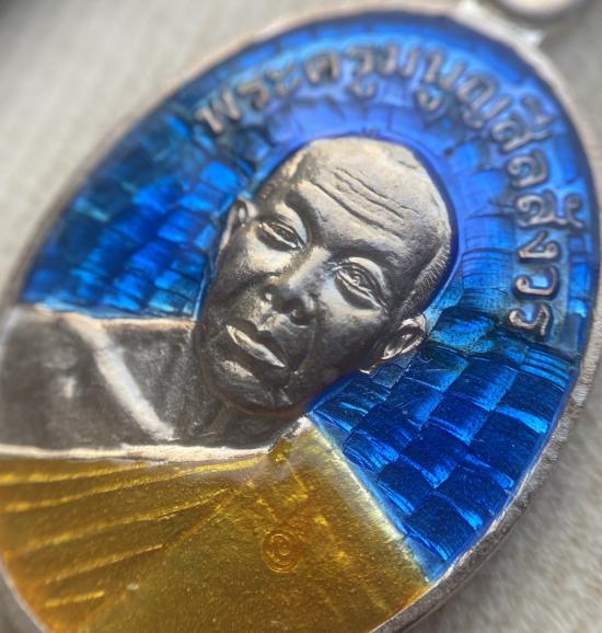 เหรียญที่ระลึกงานทอดกฐินสามัคคี หลวงพ่อแถม วัดช้างแทงกระจาด เนื้อเงินลงยาน้ำเงิน ปี 55 หายากมาก