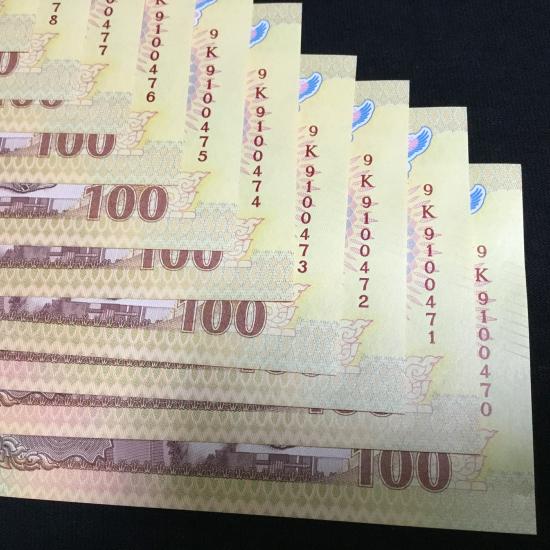 10 ฉบับแบงค์ 100 ที่ระลีก บรมราชาภิเษก รัชกาลที่ 10 เลขเรียง **หมวด 9K-9100470----9K-9100479** มี 1 ฉบับ หมวด9- 9 หน้า 9 หลัง** |