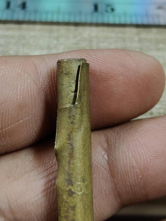 A6327.ตะกรุดเก่า ไม่ทราบที่ ขนาดยาว 2.8 นิ้ว เคาะเดียวเเดง |