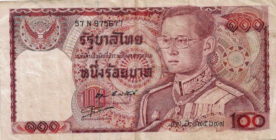 ธนบัตรหมุนเวียน ยุครัชกาลที่ 9 ธนบัตรแบบ 12 ชนิดราคา 100 บาท สุธี - กำจรฯ เลข ๕๗ อ ๙๗๕๖๗๗ |