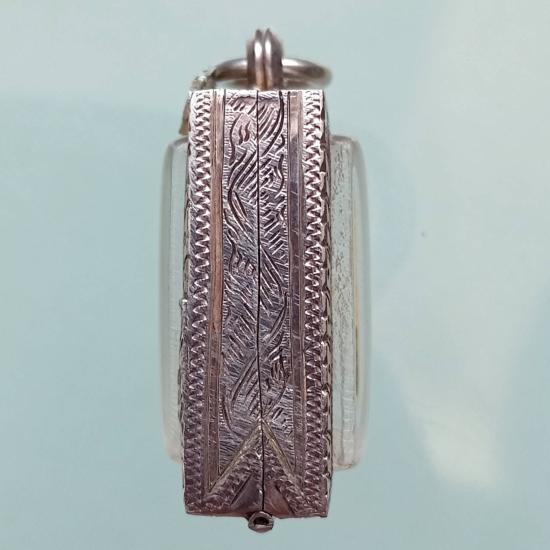 แดงเคาะแรก ตลับเงินแท้มือ2 เดิมใส่พระคำข้าว กระจก 1.8×2.6 เซนติเมตร
