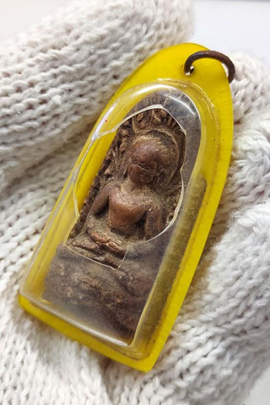 หลวงปู่แหวน พระลือชัยไตรมาส เลี่ยมเก่า ( มีกะเทาะบนขวา สภาพน่ารัก ) |