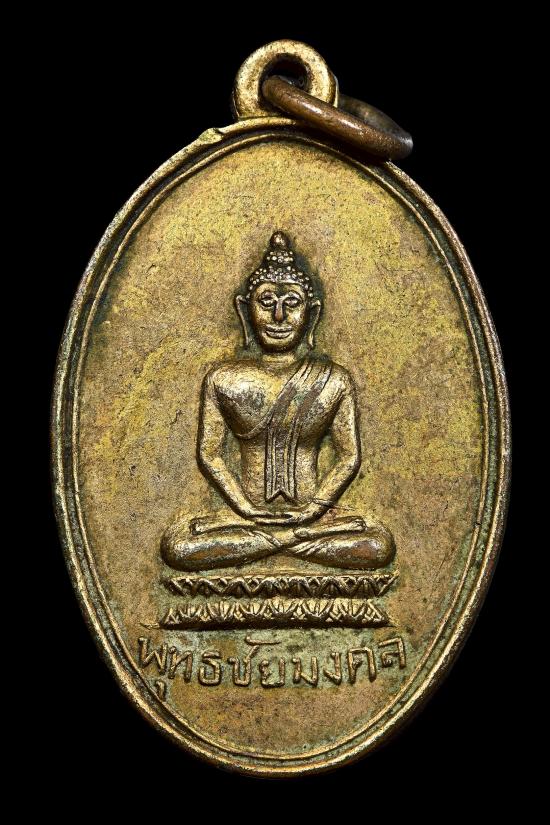 เหรียญพระพุทธชัยมงคล สมเด็จพระมหาวีรวงศ์ (ติสโส อ้วน) พ.ศ.2492 วัดบรมนิวาส จ.กรุงเทพฯ เนื้อกะไหล่ทอง พระดีปีลึก