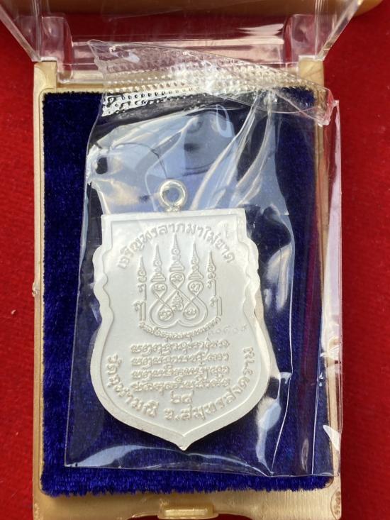 ออกวัด 2,500 เหรียญเสมาหน้าแซยิด หูเชื่อมโบราณ เจริญพร ลาภมาไม่ขาด หลวงพ่ออิฏฐ์ วัดจุฬามณี เนื้อเงินลงยาแดง ลงยาจีวร เลข10507