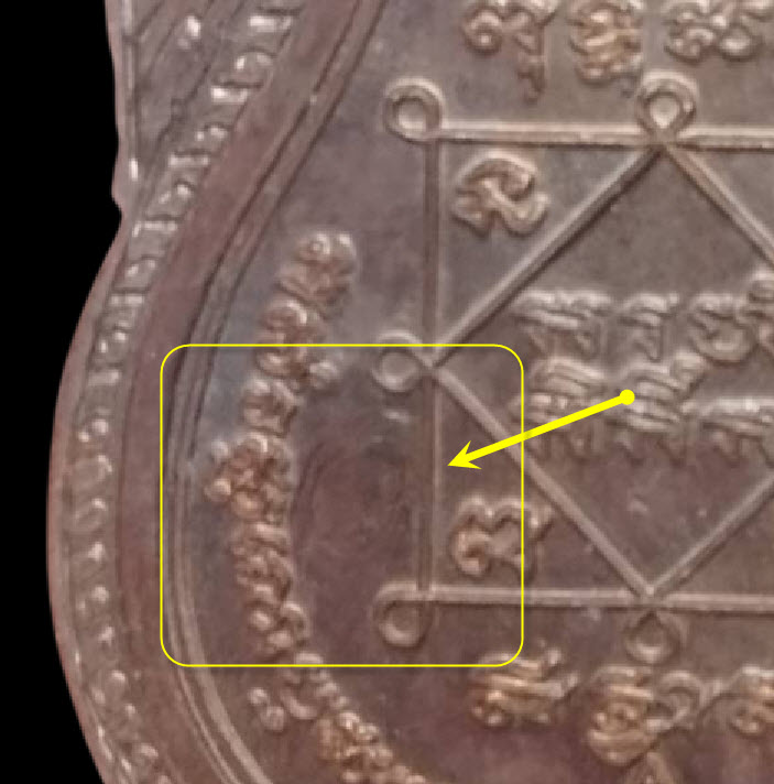 เนื้อทองแดง......................ด้านหน้าข้างหัวเข่าขวาองค์พระ 1 ตัว |