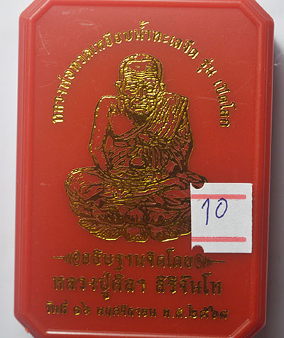 หลวงปู่ทวด รุ่นเปิดโลก หลวงปู่ศิลาอธิษฐานจิต วัดพระธาตุหมื่นหิน เสมาเนื้อทองแดง มันปู ลงยาสีเขียว เลข 10