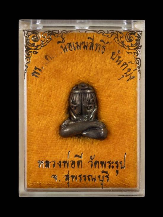 พระปิดตายันต์ยุ่ง เนื้อเมฆสิทธิ์ แข้งยาว ปี พ.ศ.๒๕๓๔ กล่องเดิม (นิยม) สีผิวออกปีกแมงทับ สวยๆเดิมๆ หลวงพ่อดี วัดพระรูป สุพรรณบุรี (เคาะเดียวแดง)