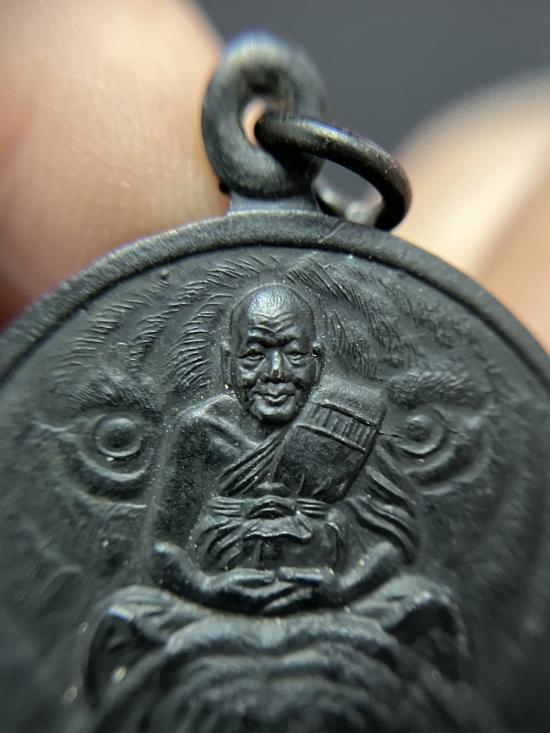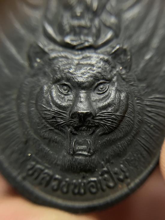 เหรียญเงาเสือ หลวงพ่อเปิ่น วัดบางพระ นครปฐม เนื้อทองแดงรมดำ ปี2543